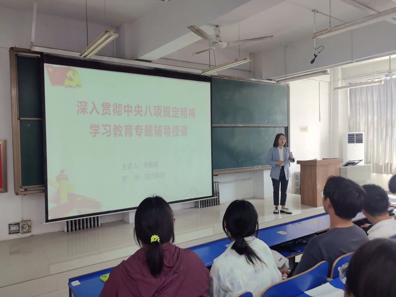会上,乔畅鸿从中央八项规定精神的背景、内容和意义入手,深入解读了习近平总书记关于加强党的作风建设的重要论述。通过引用大量实际案例,深刻剖析了当前存在的违反中央八项规定精神的各类问题,如形式主义、官僚主义、享乐主义和奢靡之风等,并就如何在日常工作和生活中贯彻落实中央八项规定精神提出了具体要求。
