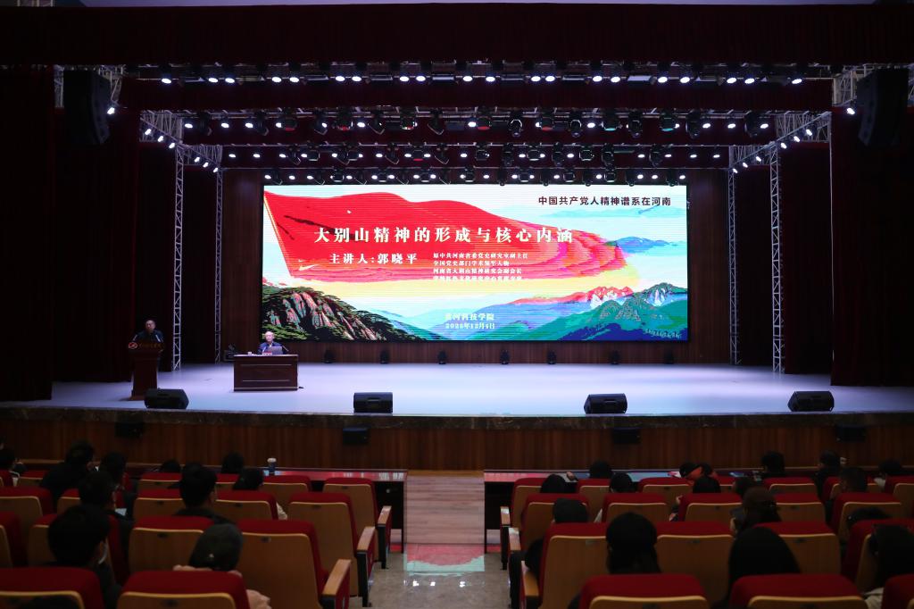 据悉,为深入贯彻党的二十届四中全会精神,落实中共河南省委教育工委、河南省教育厅相关工作部署,我校于12月正式启动“中国共产党人精神谱系在河南”系列宣讲巡讲活动。活动充分发挥“一站式”学生社区、党团支部、学生社团及红色文化弘扬基地、爱国主义教育基地等作用,以报告、访谈、座谈等形式上讲台作报告,围绕“两大奇迹”讲好新时代故事,以“中国共产党人精神谱系在河南”为主题,举办“大别山精神”“焦裕禄精神”“红旗渠精神”系列专题报告,传承红色基因,弘扬红色文化。