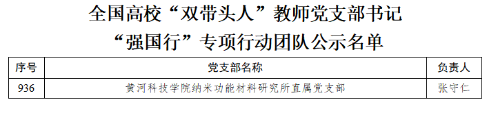 喜报 || 我校纳米功能材料研究所直属党支部入选全国高校“双带头人”教师党支部书记“强国行”专项行动团队